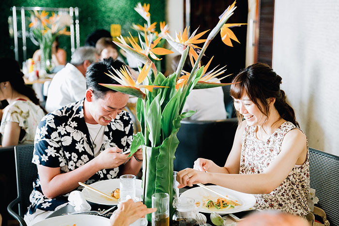 レストランは担当のサービスさんと料理相談や装飾の持込対応について密にやりとりしながら準備を承りました。